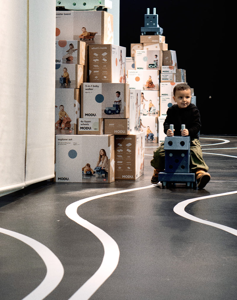 This winter holiday, a MODU Race Track transformed 200 m² of Lyngby Storcenter into a builder's paradise, inviting families to dive into creativity and competition. With MODU blocks at their disposal, children engineered their dream vehicles, navigating through MODU towers and textile obstacles in a staggering race. The event captivated the community, with ads throughout the mall drawing an overwhelming crowd, eager to participate and showcase their creations on the track.