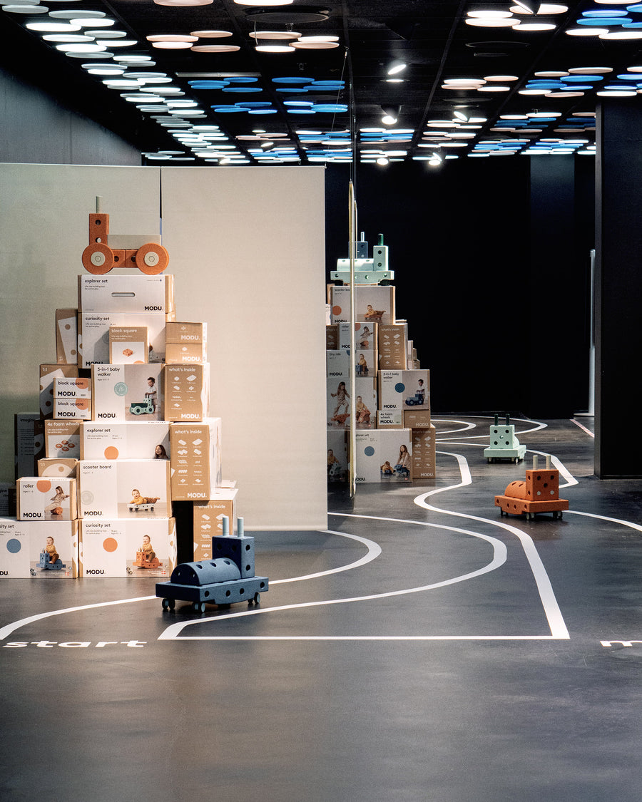 Rev up your creativity at the MODU Race Track, a highlight of the winter holidays 2024 next to Illums Bolighus at Lyngby Storcenter. Our 200 m² racing arena, complete with twists and turns, welcomed kids of all ages to craft and compete with their unique MODU vehicles.